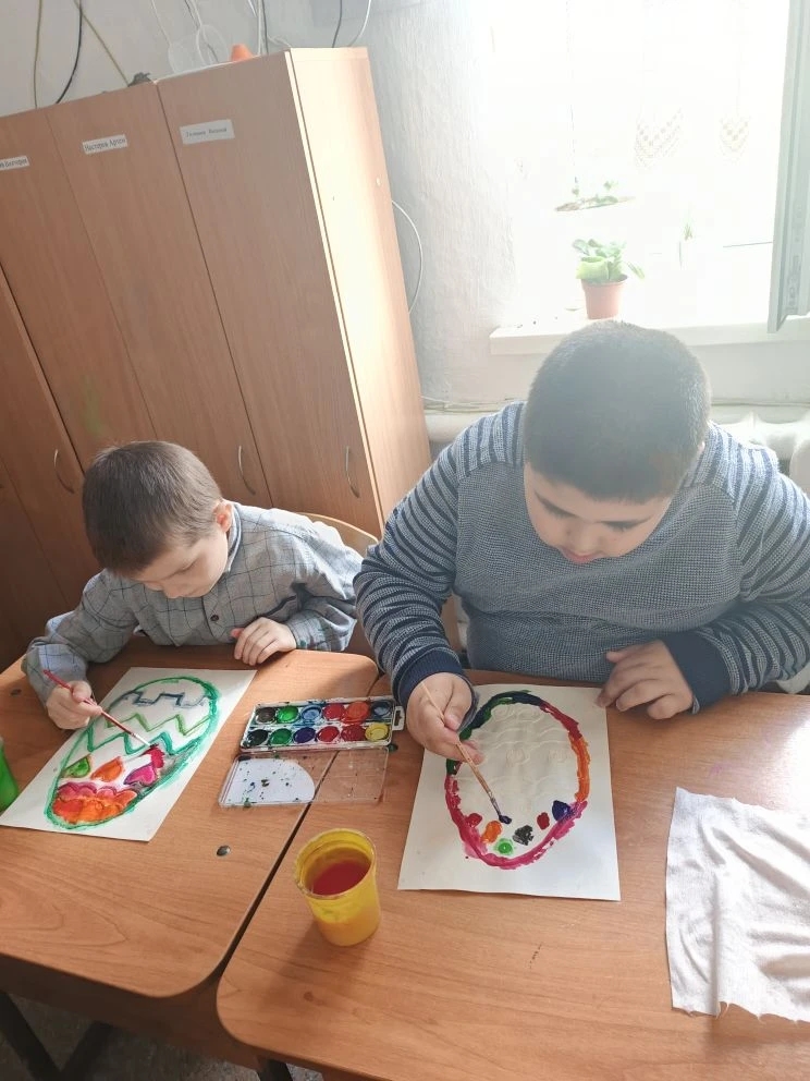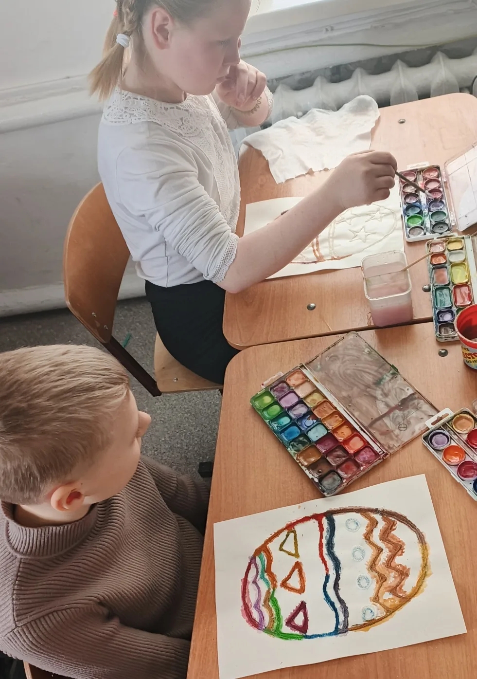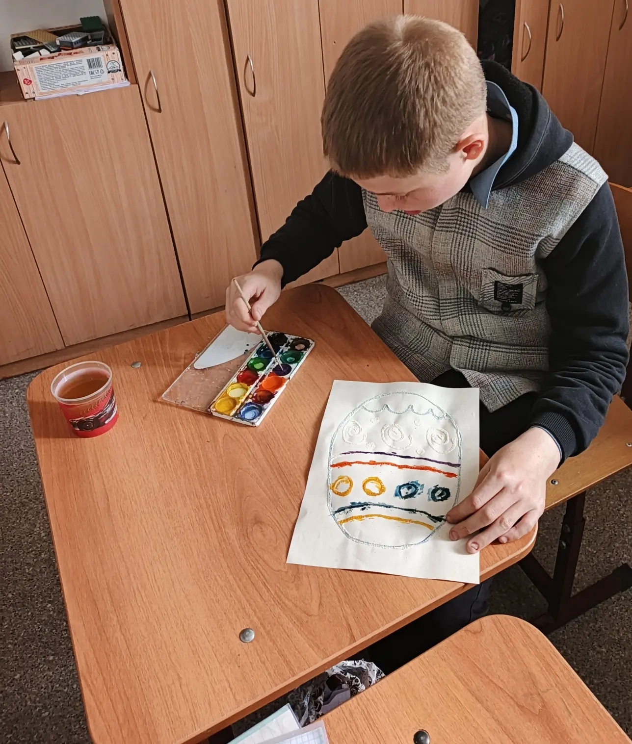 Ребята начальной школы под руководством классного руководителя Романенко А.В.нарисовали тематические рисунки , посвящённые светлому празднику!