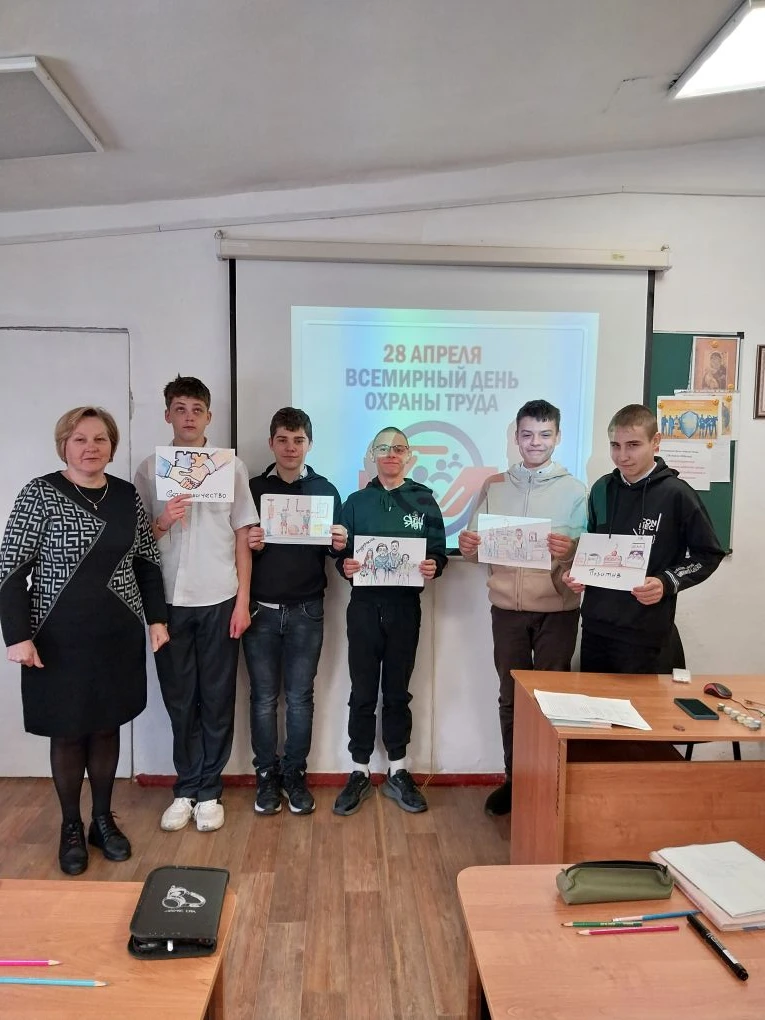 В преддверие Дня охраны труда в школе-интернате педагогом дополнительного образования Сопиной Татьяной Евгеньевной проведен конкурс рисунков «Охрана труда глазами детей». В оценке работ детей принимала участие специалист по охране труда Мирошниченко Н.Н.