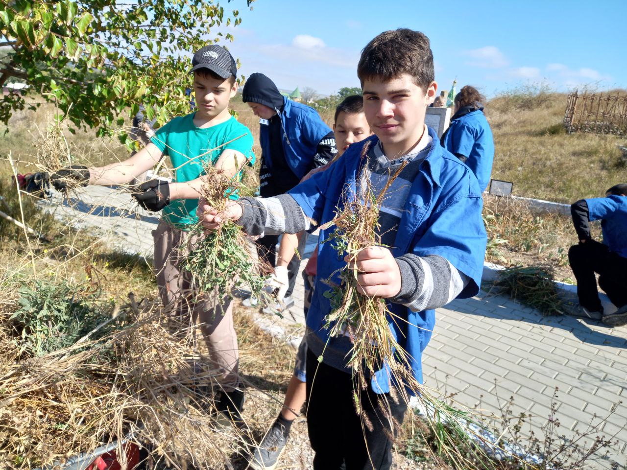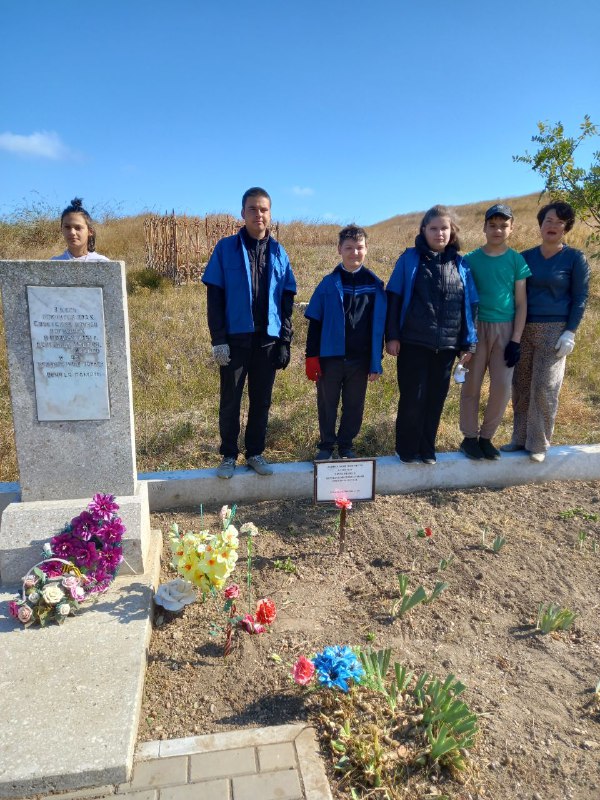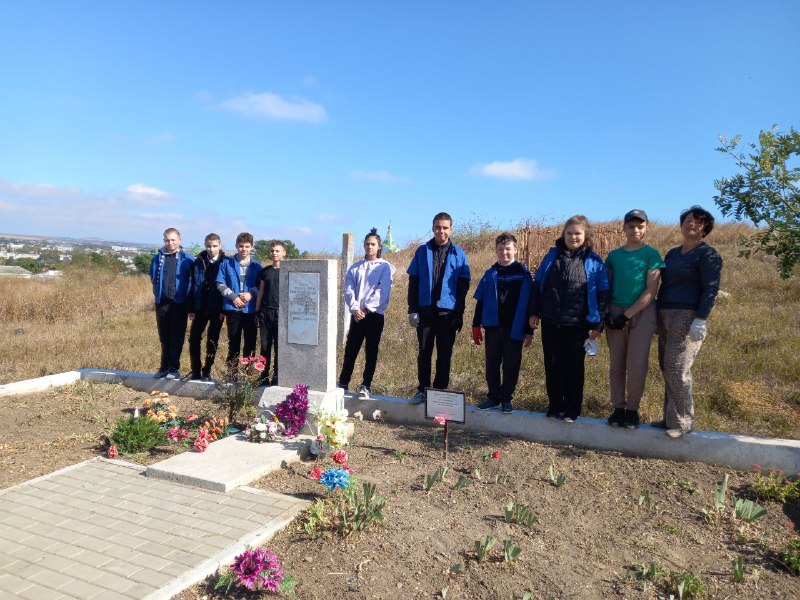 02 .10.25 г. силами учеников 7 класса вместе с учителями труда Сопиной Т.Е. и Котеленец А.В. была произведена очистка памятника, убран и вывезен сухостой и мусор.