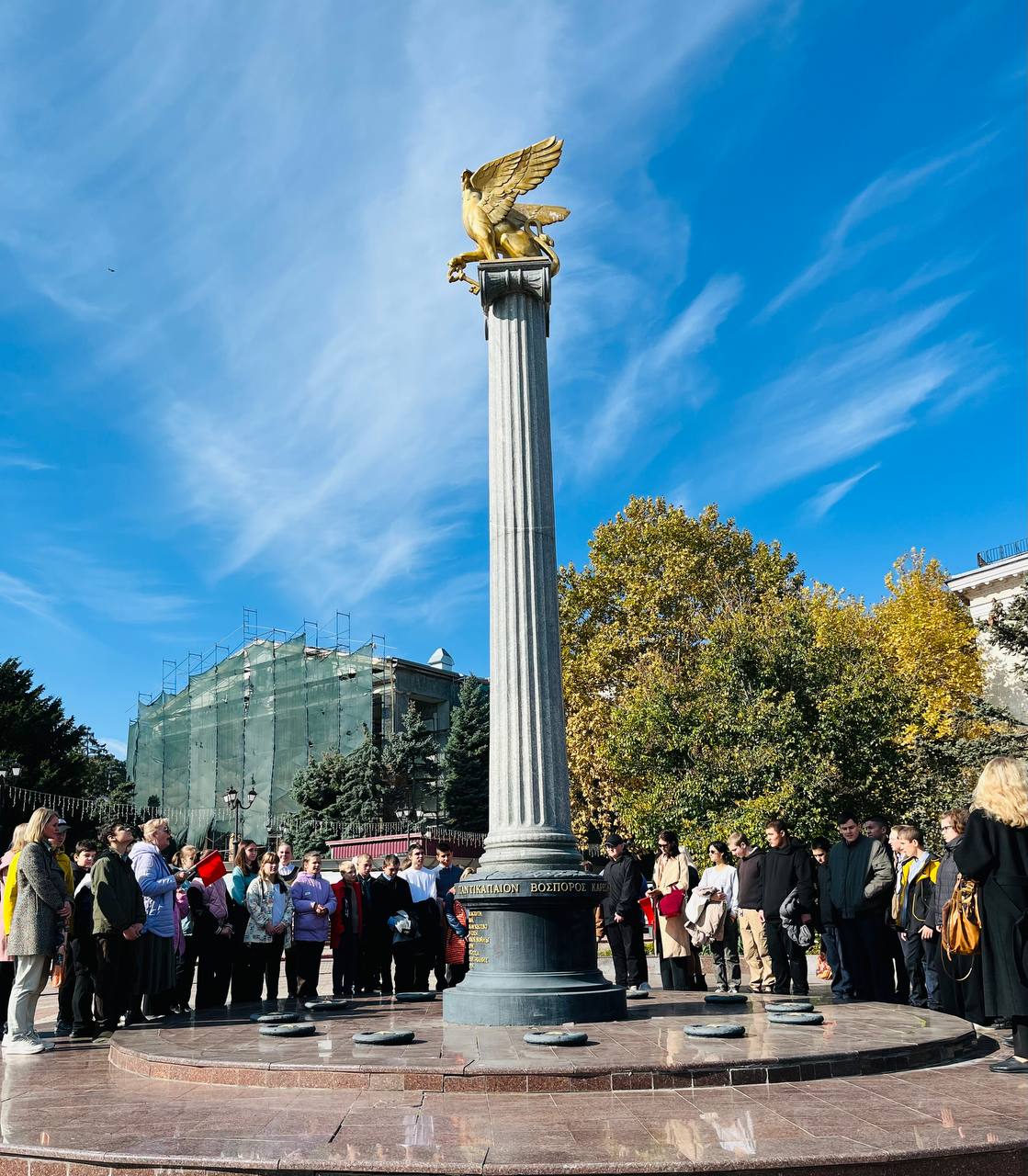В преддверии "Дня народного единства" обучающиеся нашей школы 4-9 классов вместе с учителями совершили пеший поход в рамках Всероссийского проекта «Походы Первых - больше, чем путешествие» к стелле "Города-герои" (пл. Ленина). Поход – это прекрасная возможность отдохнуть, познать что-то новое, набраться новых впечатлений. Это общение с родной природой, новые знания и впечатления, смена привычной обстановки и отличная физическая активность. В ходе увлекательного похода ребята, учителя и родители продемонстрировали свое единство, сплоченность и взаимопомощь. Нашли время совершить с нами пеший поход мамы обучающихся 6 и 7 классов Явтушенко А.А. и Крайняя Е.А. Учитель истории Мосенцева О.В. рассказала ребятам о двенадцати городов-героев. На своих гербах имеют изображение медали «Золотая Звезда» только города Волгоград, Керчь, Севастополь, Смоленск, Одесса. Советник директора по воспитанию Калитёнок А.Ю. рассказала более подробно когда и за какие заслуги город Керчь стал городом героем.