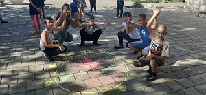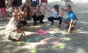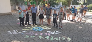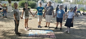 Во дворе школы дети и воспитатели приняли участие в акции рисунков на асфальте «Дети против террора».