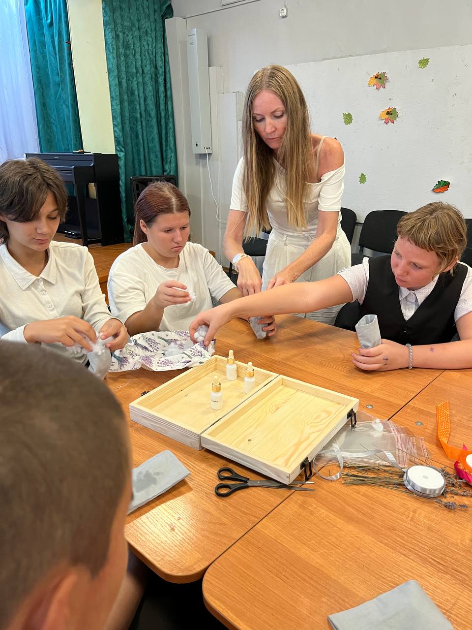 Парфюмер Алёна Лунина провела 9.09.2025 года парфюмерный мастер-класс по созданию аромасоше для обучающихся нашей школы-интерната на благотворительной основе.