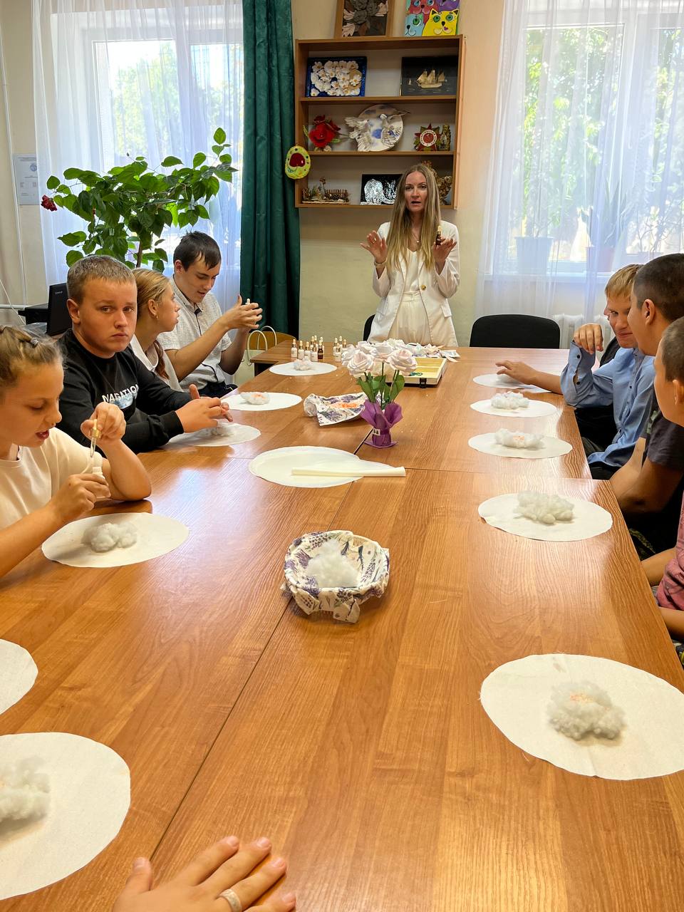 Парфюмер Алёна Лунина провела парфюмерный мастер-класс по изготовлению белых цветков для обучающихся нашей школы-интерната на благотворительной основе.