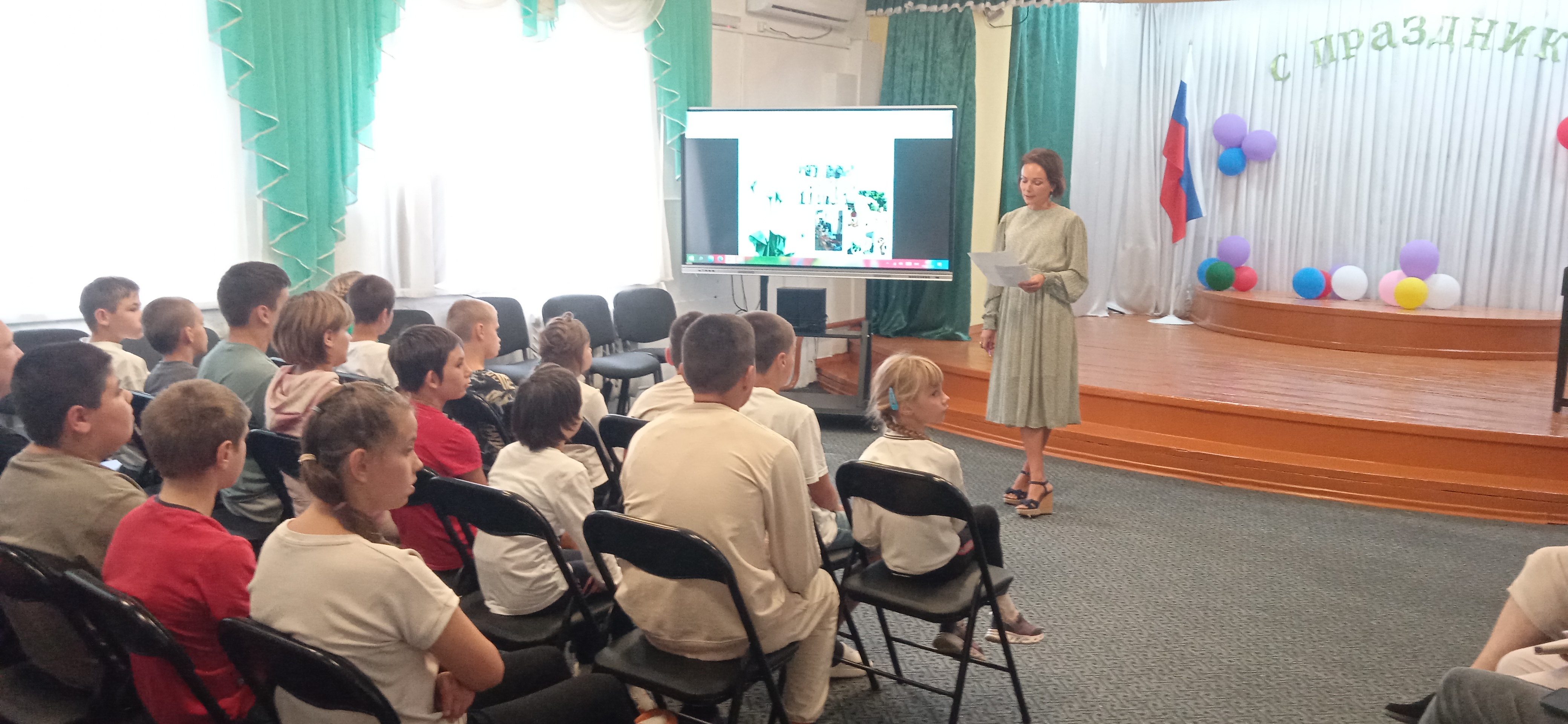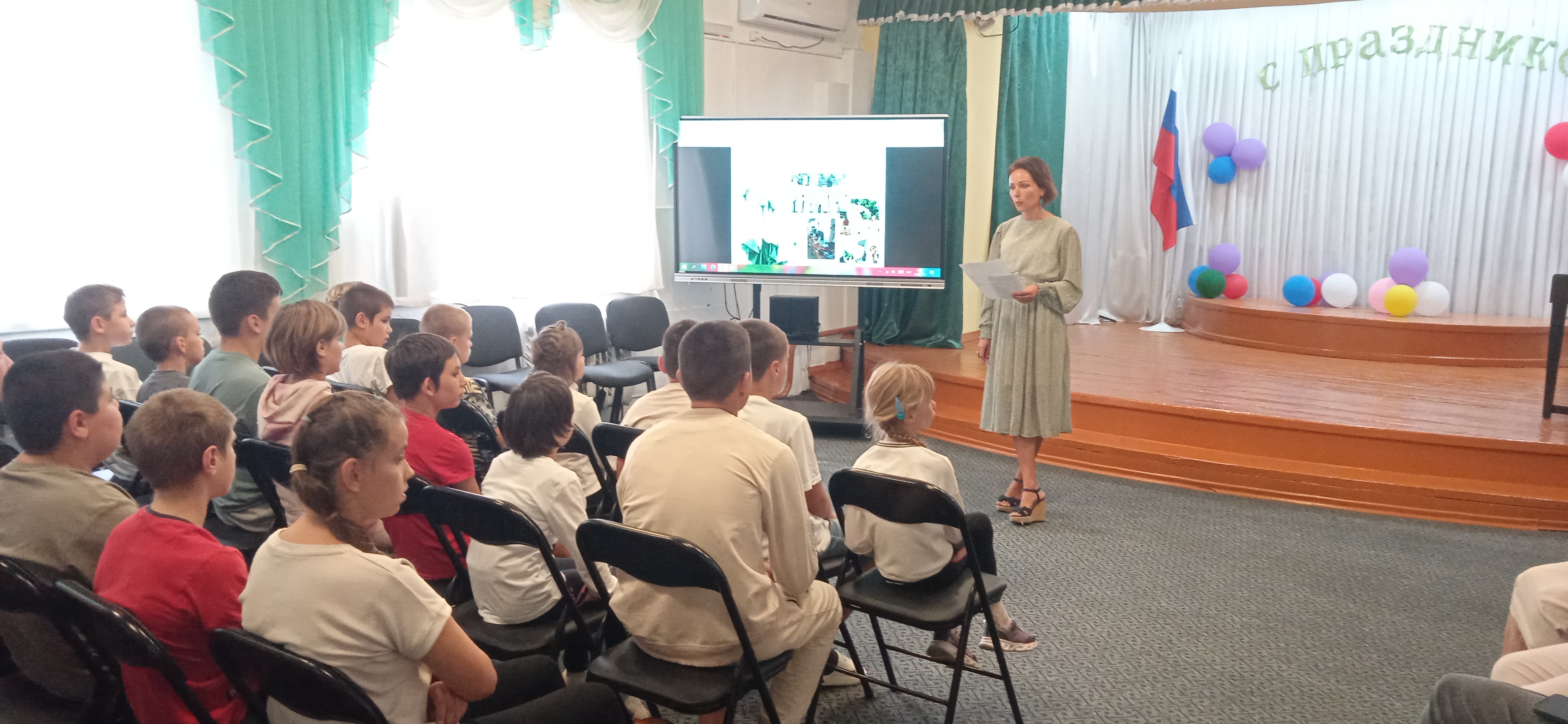 Педагог-организатор Кретова Наталья рассказала ребятам об истории и традиции проведения праздника «Белый Цветок» в России.