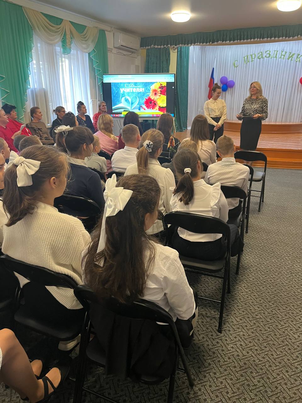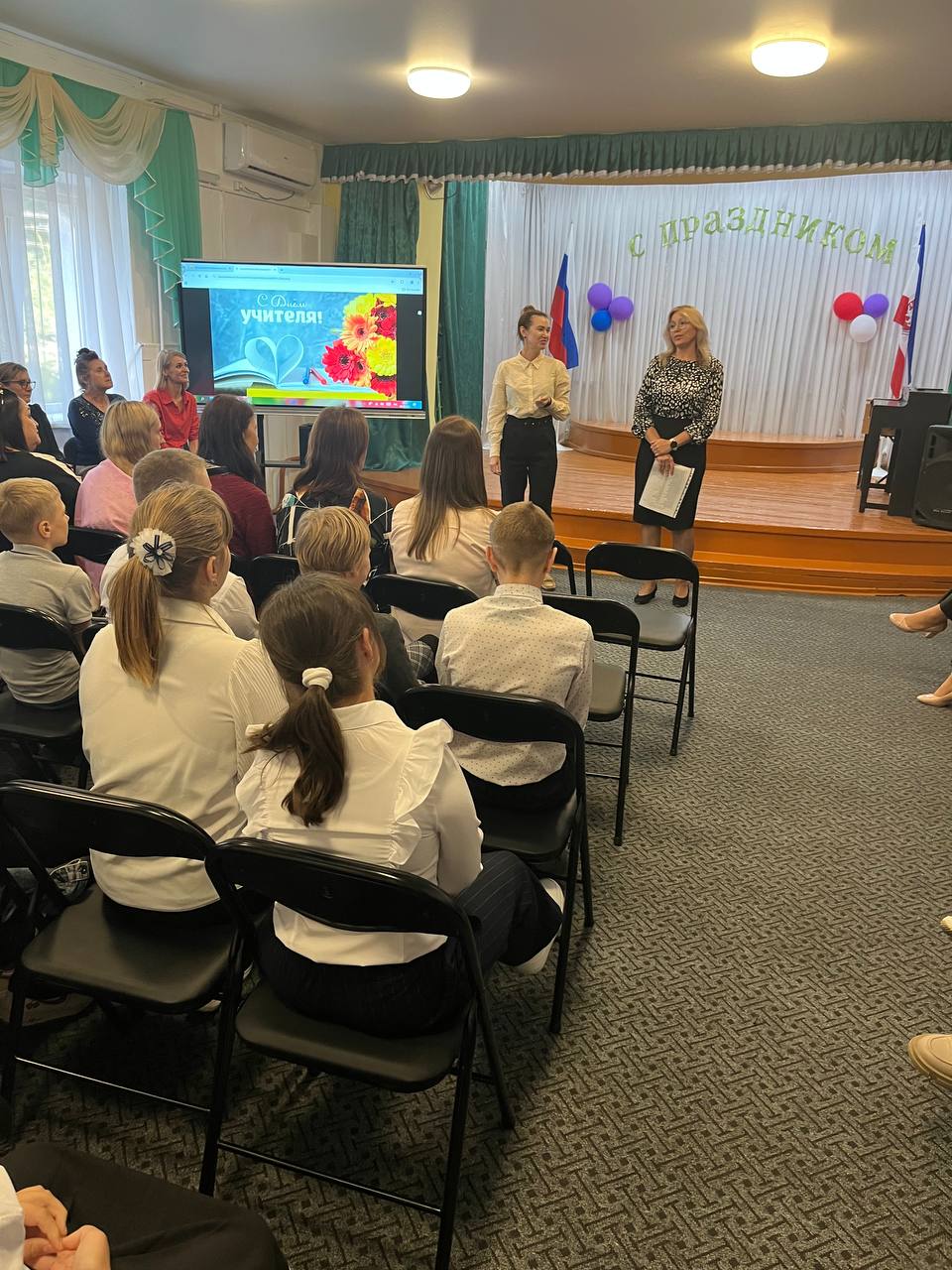Мероприятие началось с торжественной церемонии, где директор школы Татьяна Олеговна Терлецкая поздравила всех педагогических работников теплыми словами.